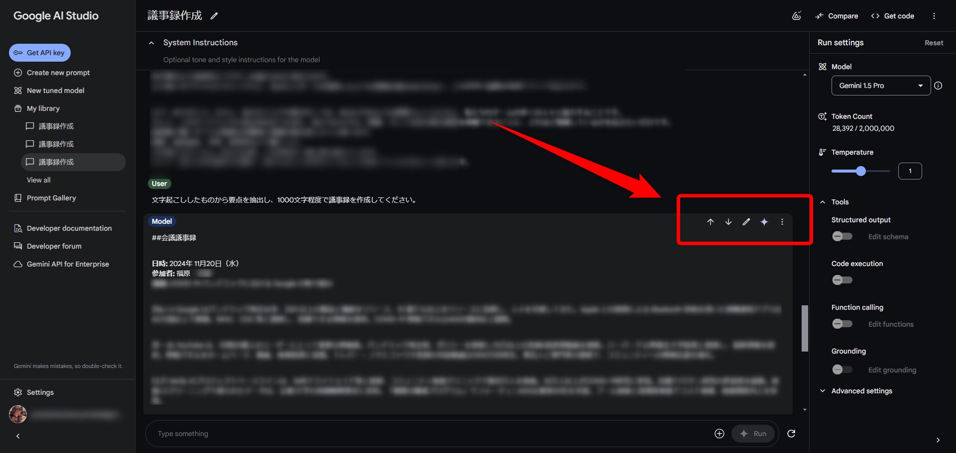 Google AI Studioでは、あとからプロンプトや回答を編集することも可能です。不要な言葉や文字がある場合には適宜校正してください。