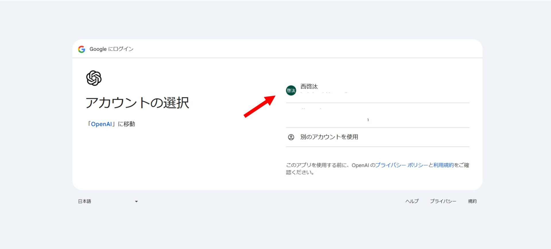 Googleアカウントを選択して、OpenAIアカウントの登録を完了させます。