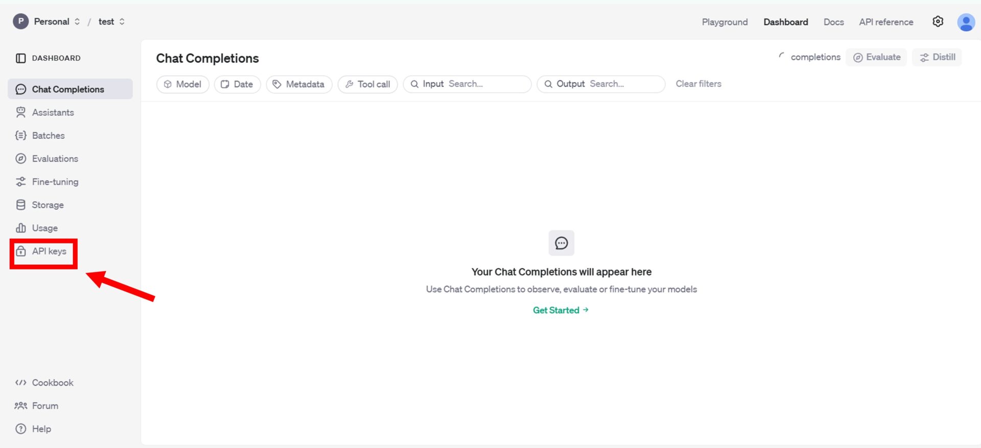 アカウント作成が完了したら、次にChatGPTのAPI Keyを取得しましょう。