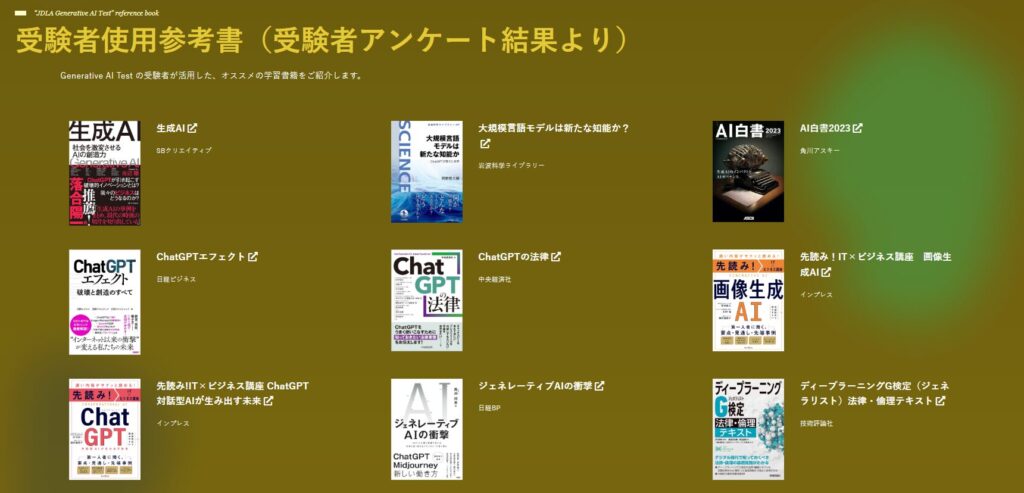 JDLA公式サイト「受験者使用参考書一覧」はこちらから確認できます。