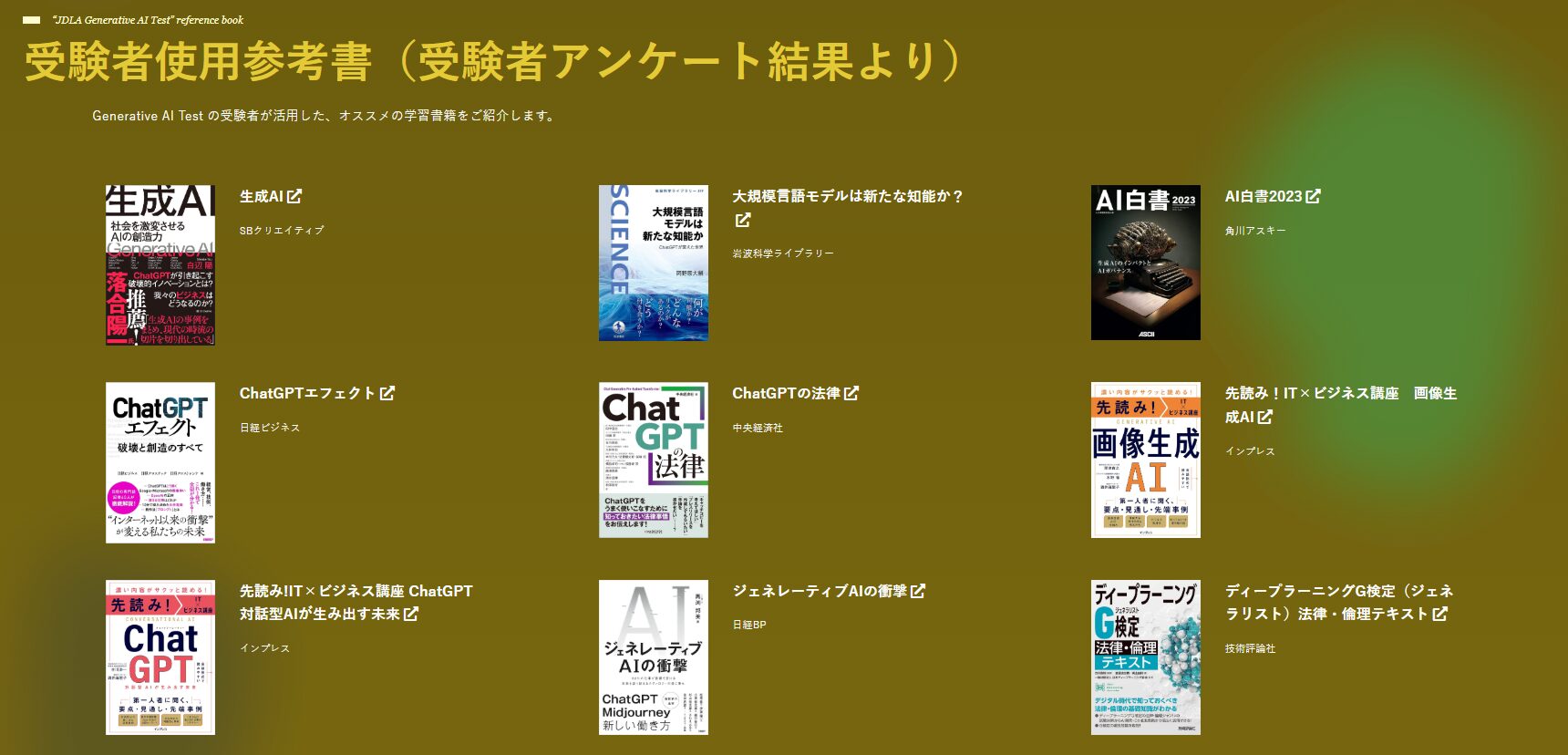 JDLA公式サイト「Generative AI Test 学習参考資料」はこちらから確認できます。