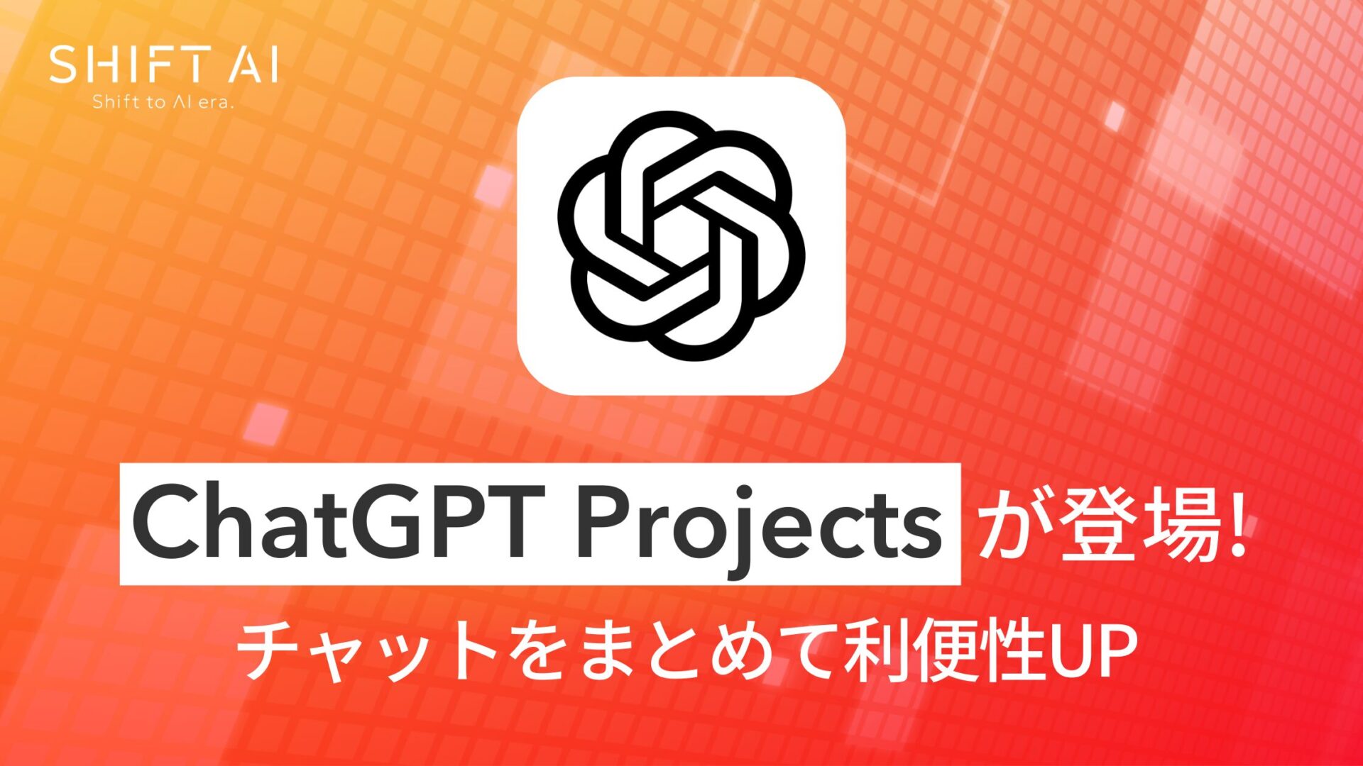 本記事では、ChatGPT「Projects」の機能や利用条件、具体的な使い方について解説します。