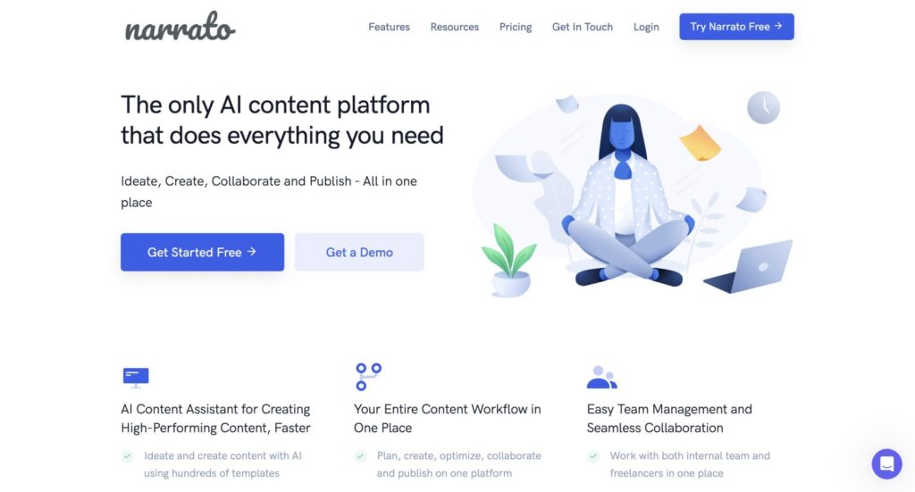 Narratoは、コンテンツの作成から管理までを一括で行えるAIプラットフォームです。