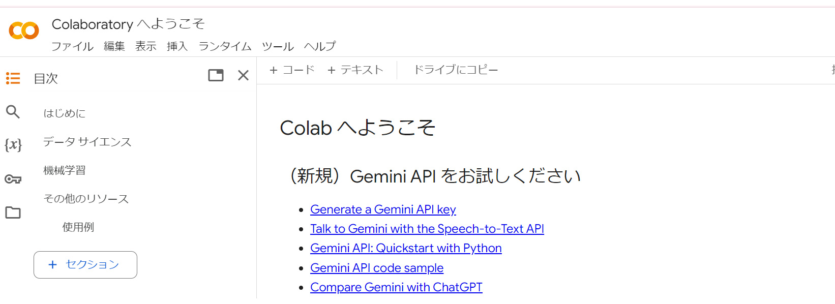 - Google Colabにアクセス