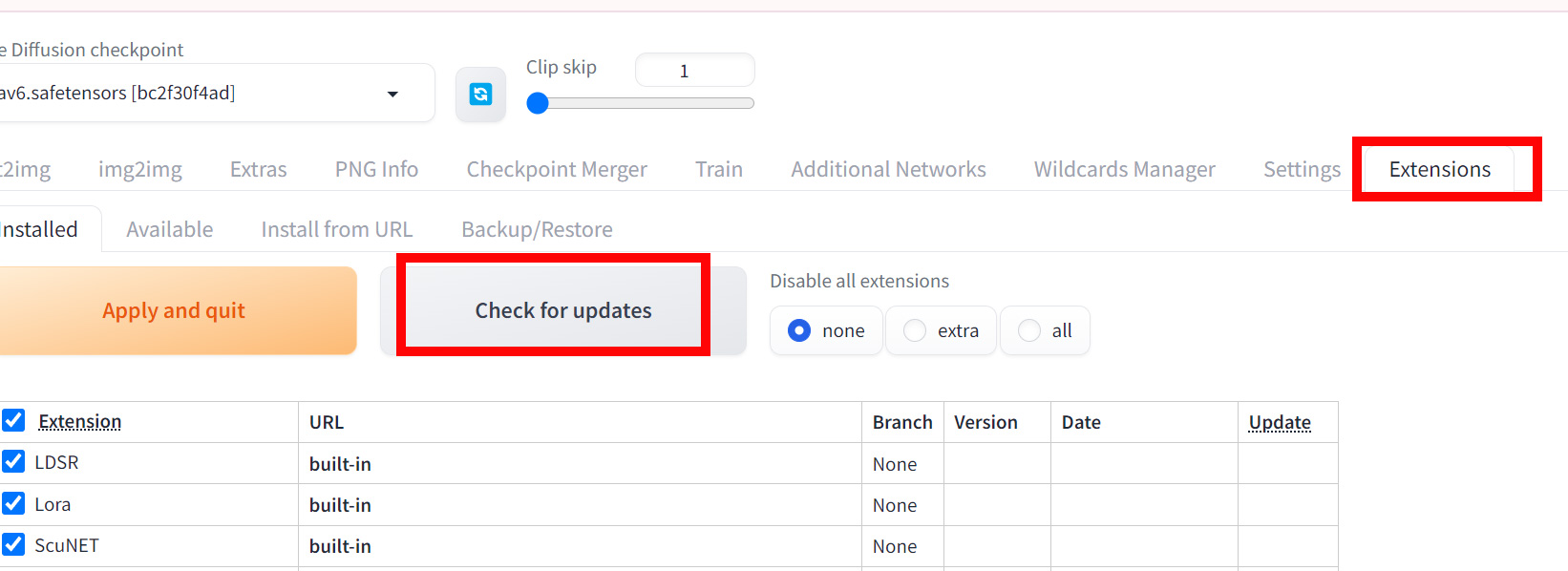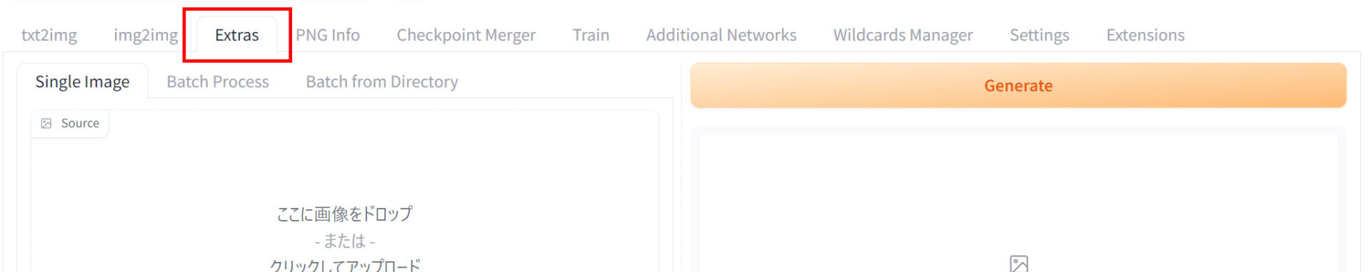- Stable Diffusion WebUIの「Extensions」タブを開く