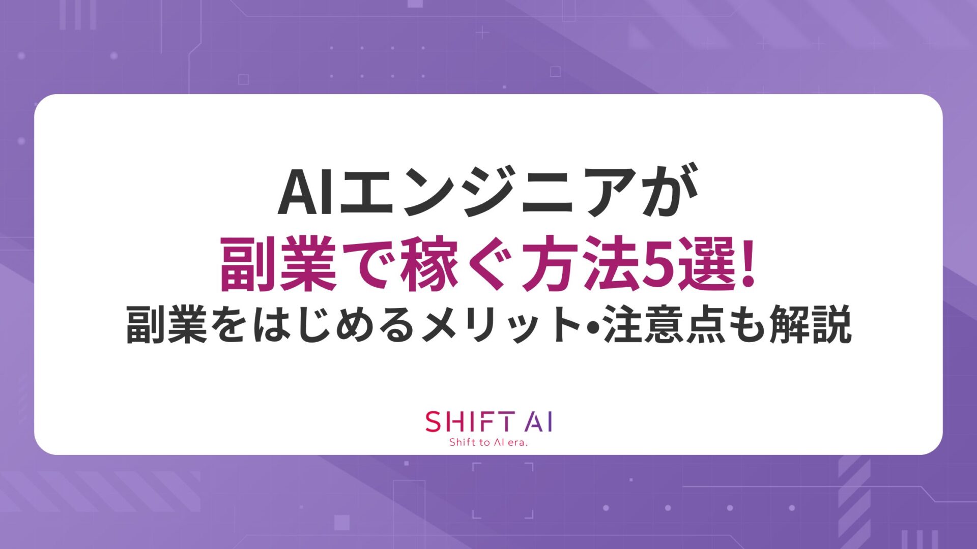 AIの急速な進化に伴い、AIを活用できるエンジニアの需要が高まっています。同時に、副業としてスキルを活かし、収入を増やしたいと考えているAIエンジニアも増えています。