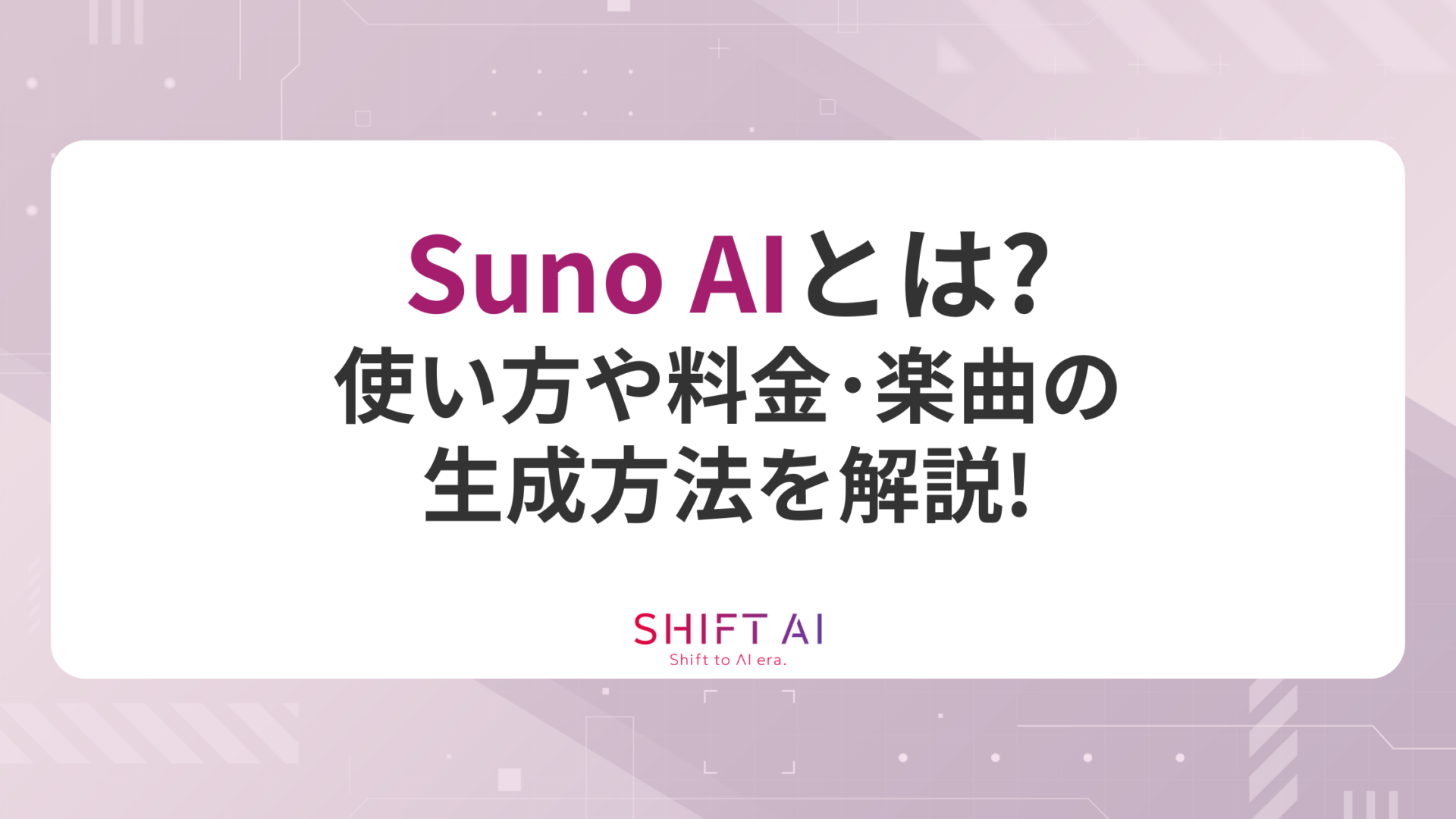 本記事では、Suno AIとはどのような音楽生成AIツールなのか、その概要から使い方や料金、楽曲の作り方・活用のコツ、注意点までを詳しく解説します。