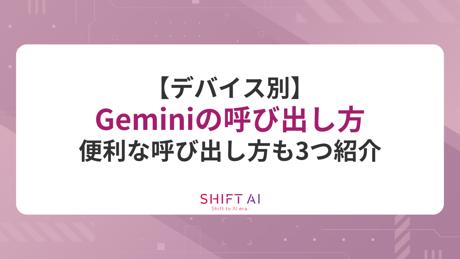 この記事ではパソコン・iPhone・Androidスマホといったデバイス別に、Geminiの呼び出し方(起動方法)を丁寧に解説します。さらに、音声操作などより便利にGeminiを呼び出す3つの方法も紹介します。