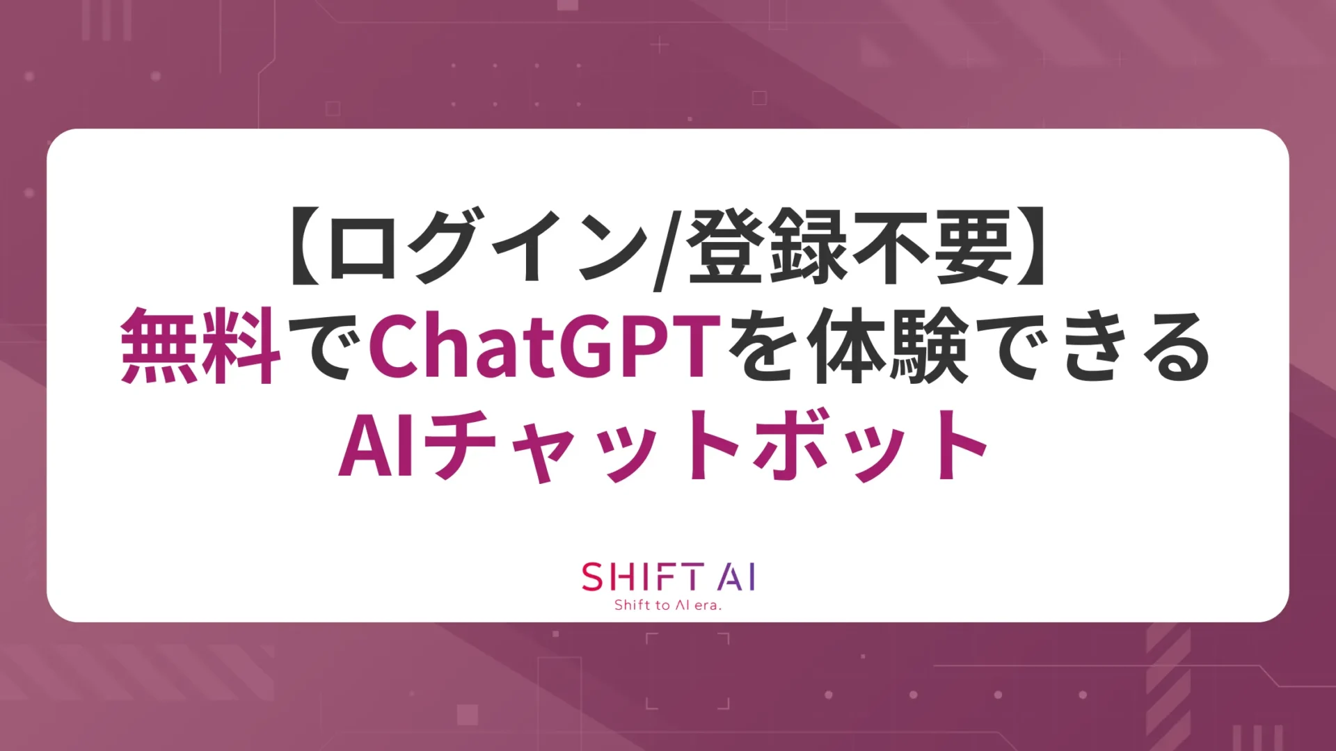 回数制限なしで使い放題なので、「ChatGPTをまずは手軽に試してみたい」「無料でAIを使いまくりたい」という方は、ぜひお試しください。