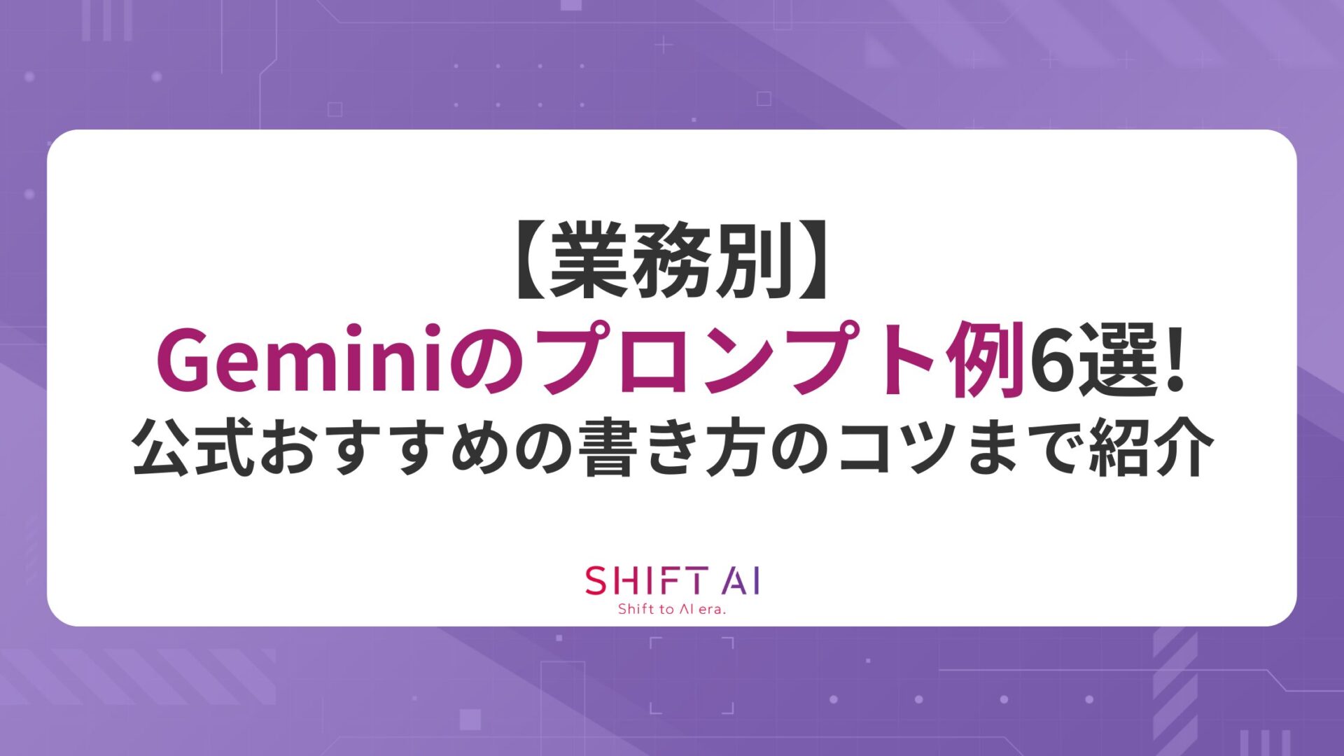 紹介するプロンプトを参考にすれば、今後プロンプトの書き方に迷うことなく、Geminiを業務に活かせるようになるでしょう。