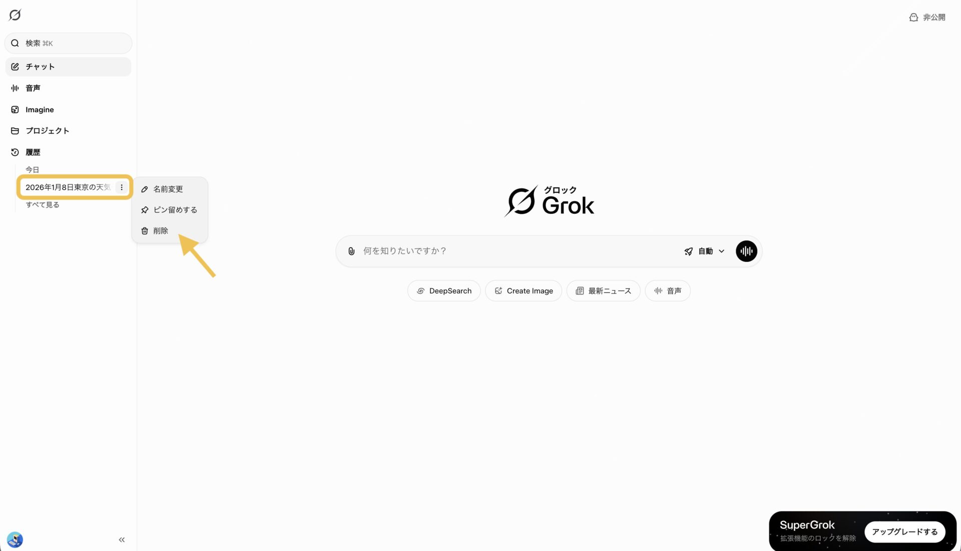 無料で今すぐもらうGrokの生成履歴の削除方法