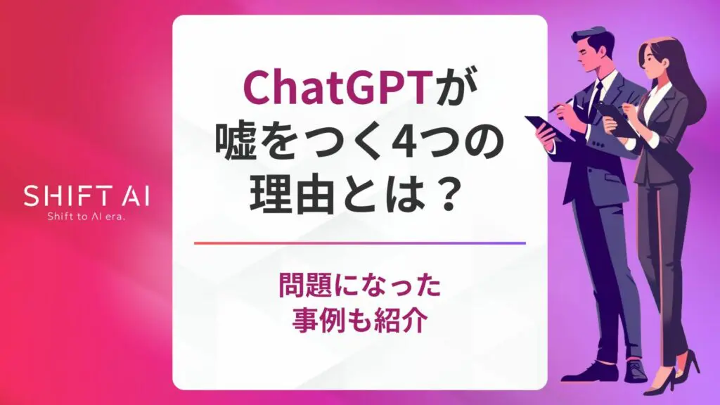 本記事では、ChatGPTが嘘をつく理由を解説し、実際に問題になった事例を紹介します。また、ChatGPTを検証し、嘘をつかせない方法や見抜く方法についても解説しています。