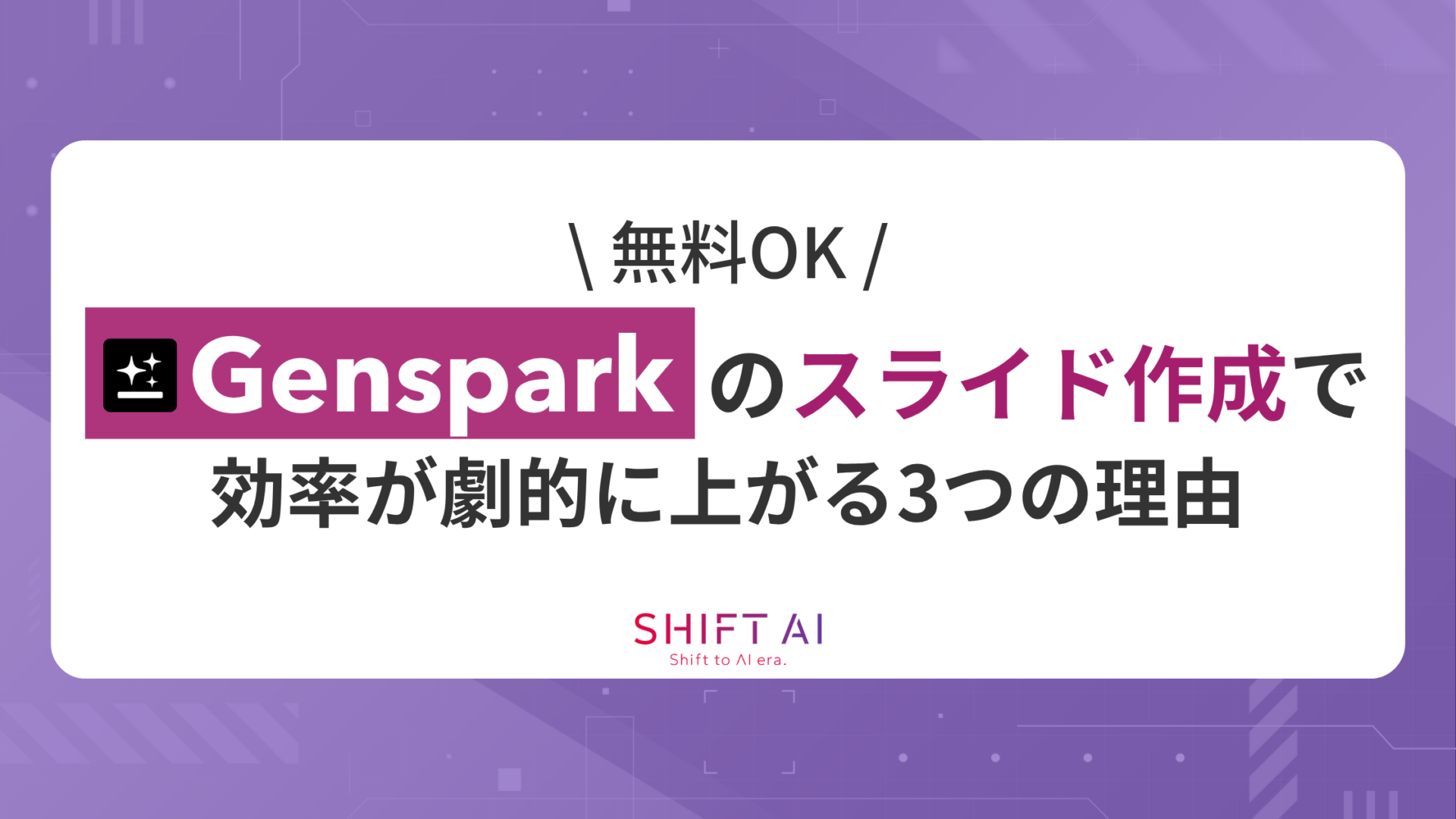 Gensparkを使うとスライド作成が効率化できる理由は、以下のとおりです。