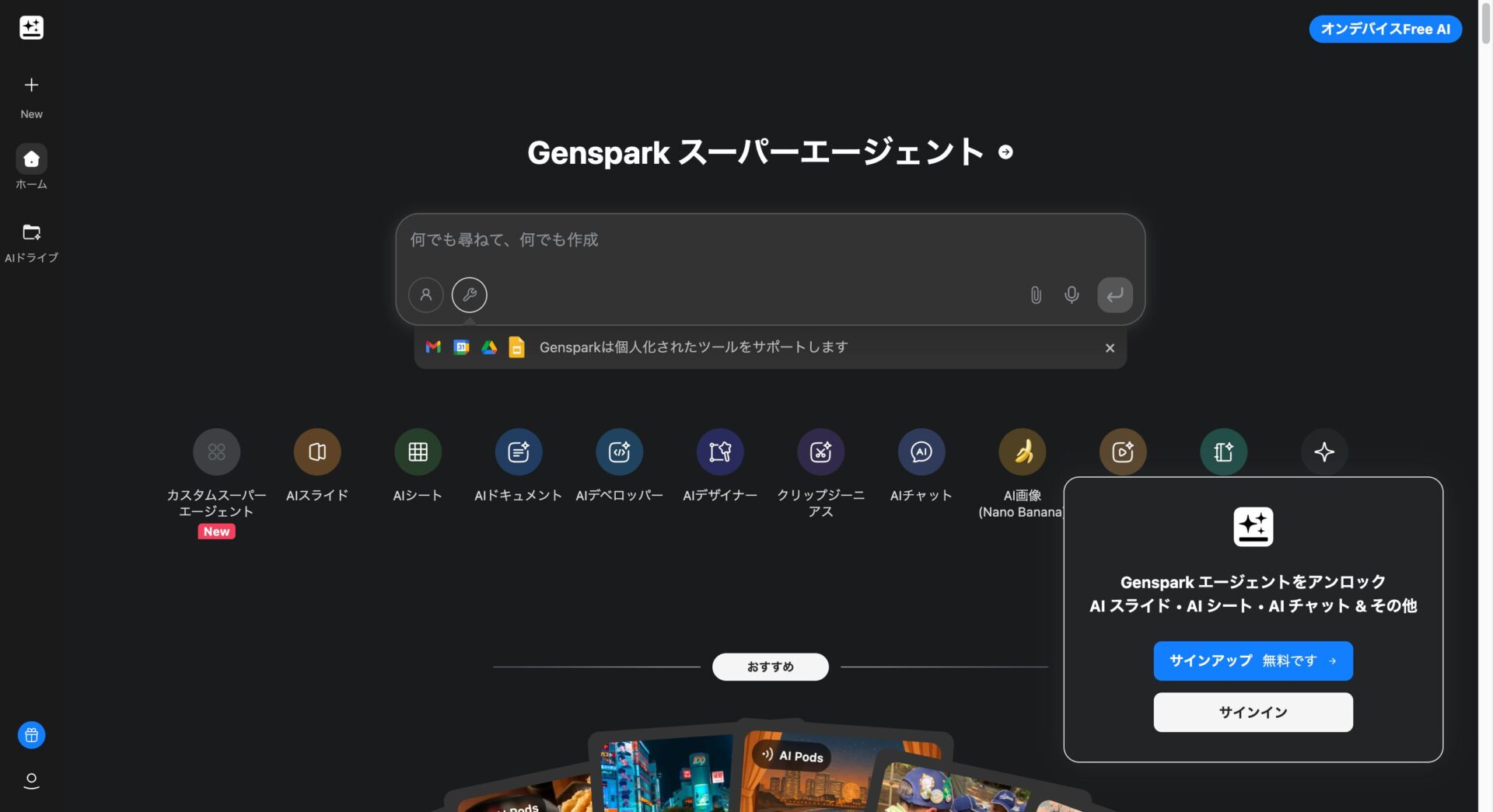 無料プランは、Gensparkを試してみたい初心者や、軽度な利用を考えている方に最適です。