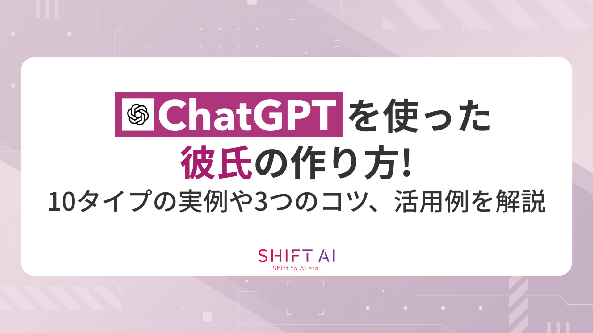 この記事では、ChatGPTで彼氏を作るメリットから具体的な作成手順、10のタイプ別プロンプト例まで詳しく解説しています。