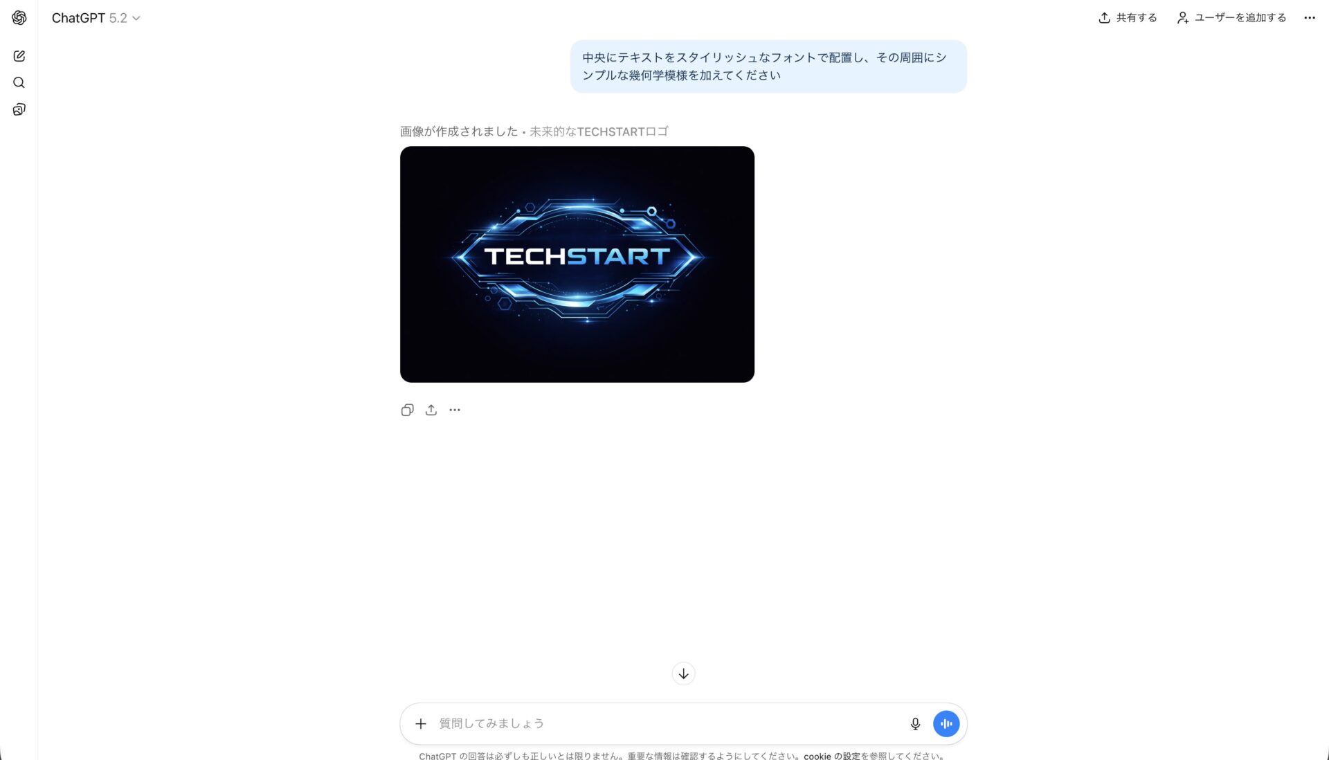 詳細な指示を提供すると、ChatGPTがより正確に意図を理解し、希望に沿ったロゴを作成します。