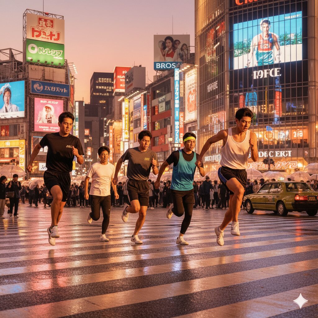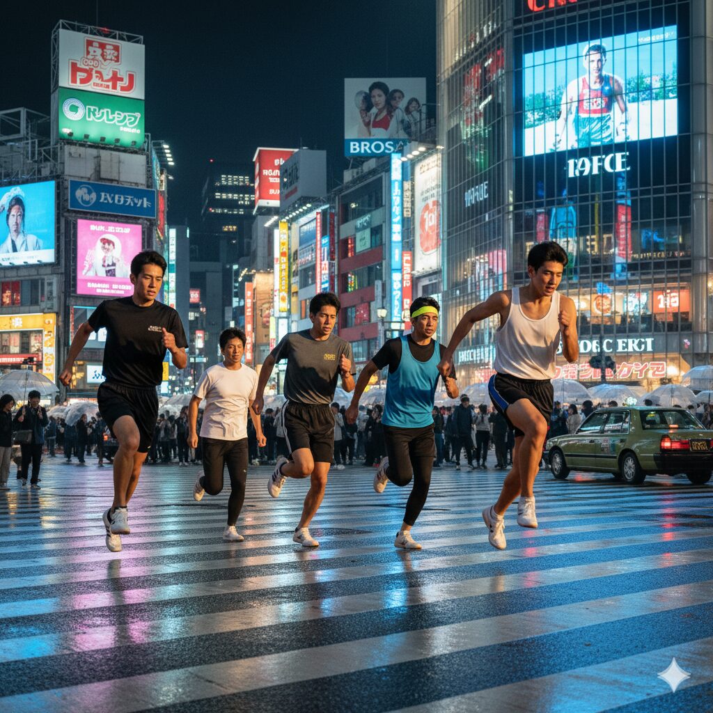 [アップロードした人物写真] の背景を、東京・渋谷のスクランブル交差点の夜景に変更してください。人物の照明も、背景のネオンに合わせて自然に調整してください。