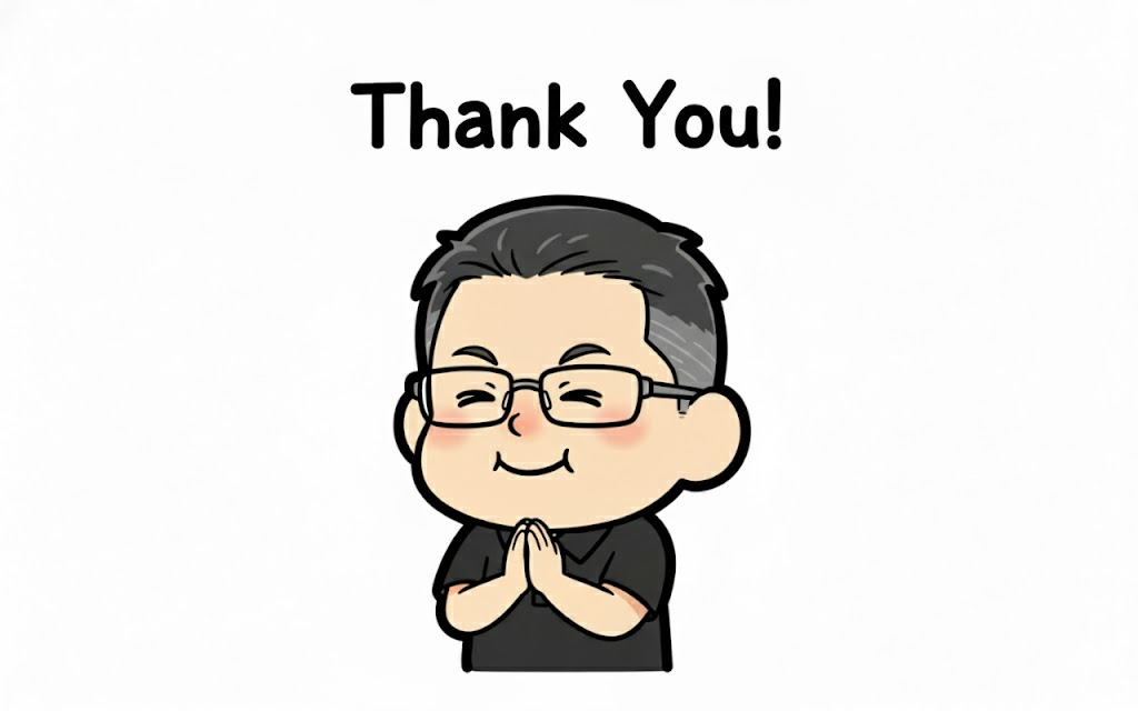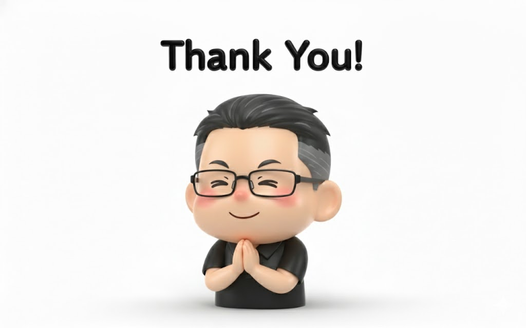 [アップロードしたキャラクター画像] を使って、「Thank You!」と言って感謝しているLINEスタンプ風の画像を作成してください。白い背景で、キャラクターはデフォルメしてください。