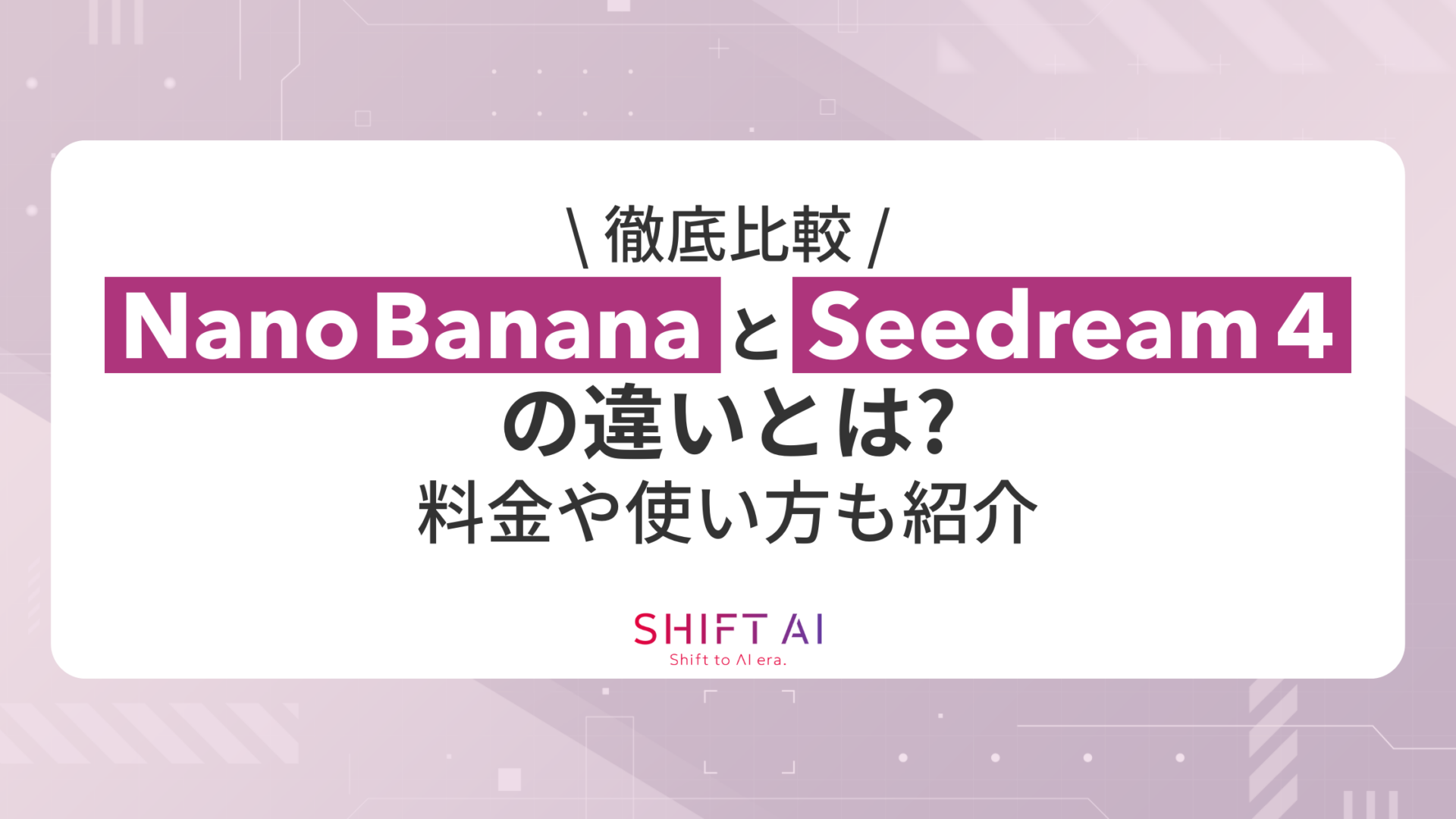 本記事では、「Nano Banana」と「Seedream 4」の概要や料金プラン、使い方をわかりやすく解説します。さらに、実際に両モデルで画像を生成し、精度や描写傾向を比較した結果も紹介します。
