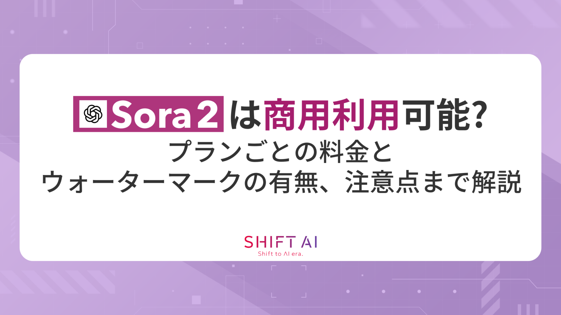 本記事では、Sora2の基本概要から商用利用の可否、3つの料金プランの違い、安全に利用するためのポイントまで、詳しく解説します。