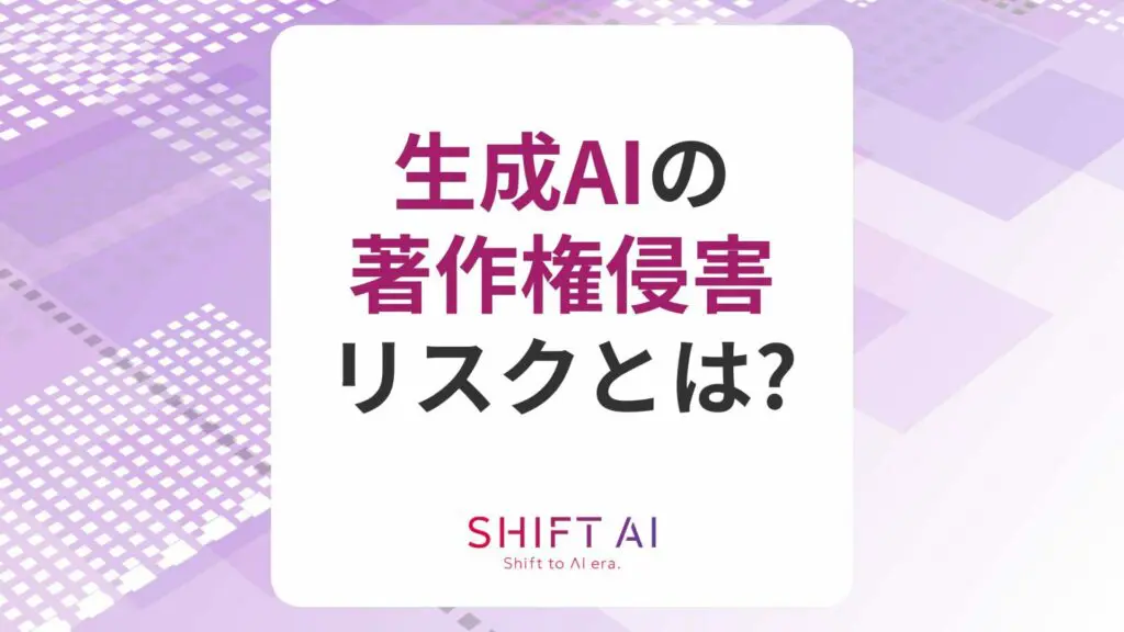 関連記事:生成AIの著作権侵害事例6選!著作権侵害を回避する方法も解説