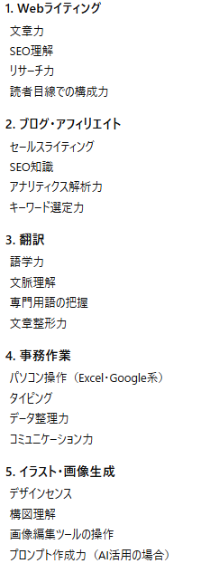 ここではChatGPTで稼ぐ際に活かせるスキルを4つ紹介します。