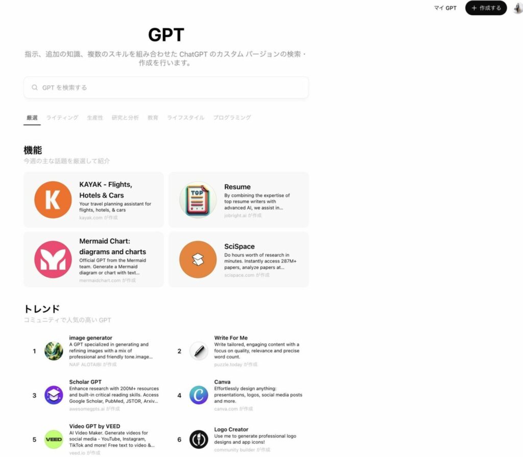 ※ OpenAIが提供するプラットフォームで、ユーザーが自作したカスタマイズGPT(GPTs)を公開・共有・収益化できるマーケットプレイス