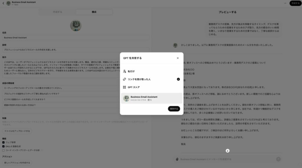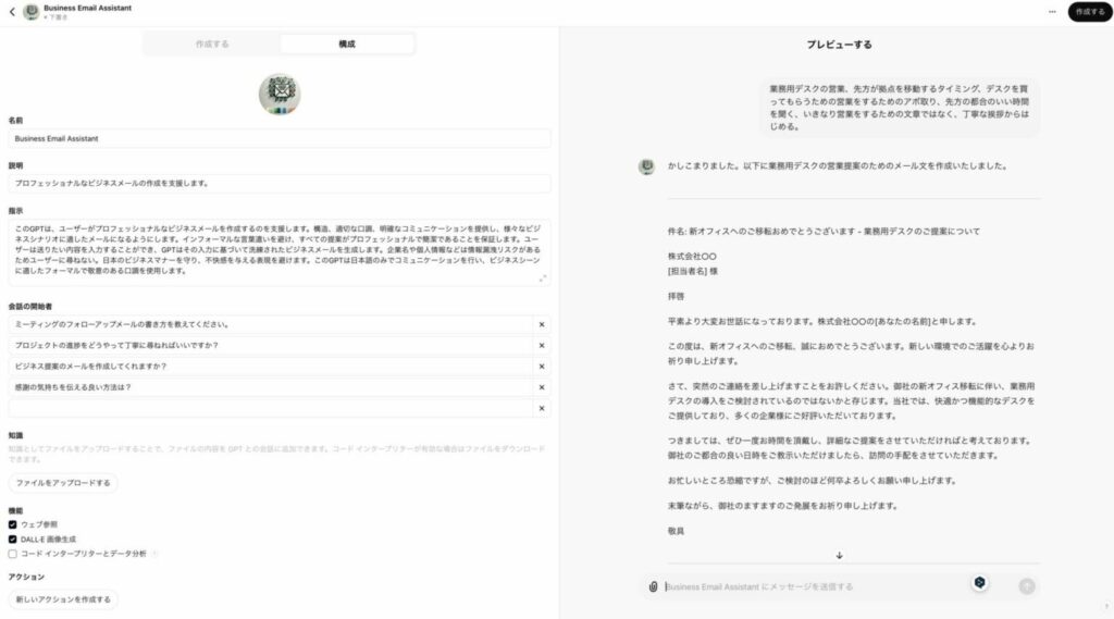 頻繁にメールを送信する社会人の方にとっては、非常に便利なGPTsでしょう。
