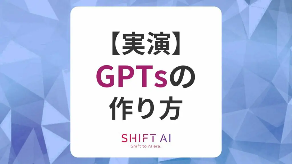 なお、弊社SHIFT AIでは、GPTsを作成する方法をはじめとした、生成AI活用に関する無料のセミナーを開催しています。