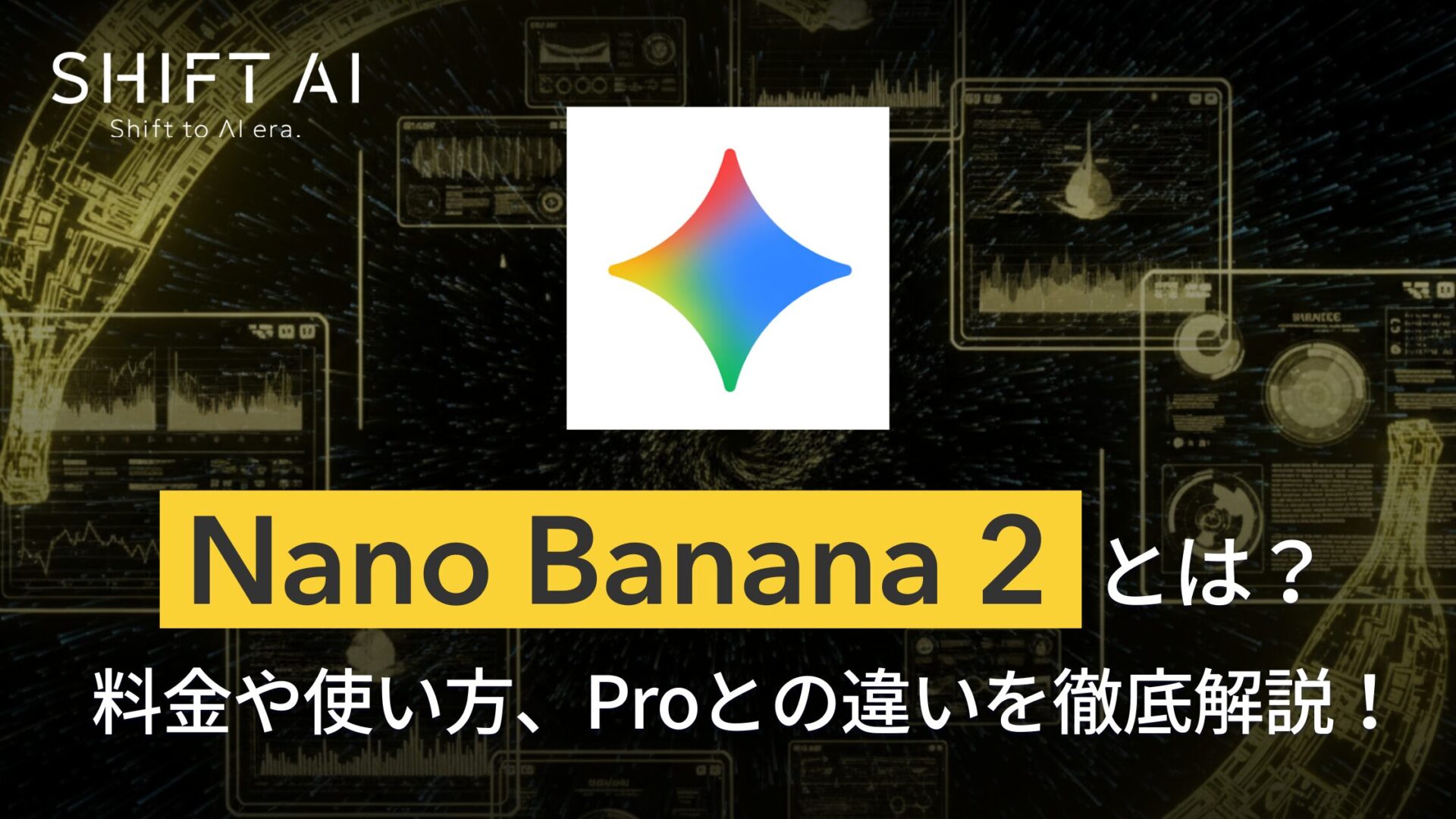 本記事では、Nano Banana 2の主な特徴や料金体系、基本的な使い方、Nano Banana Proとの違いをわかりやすく解説します。