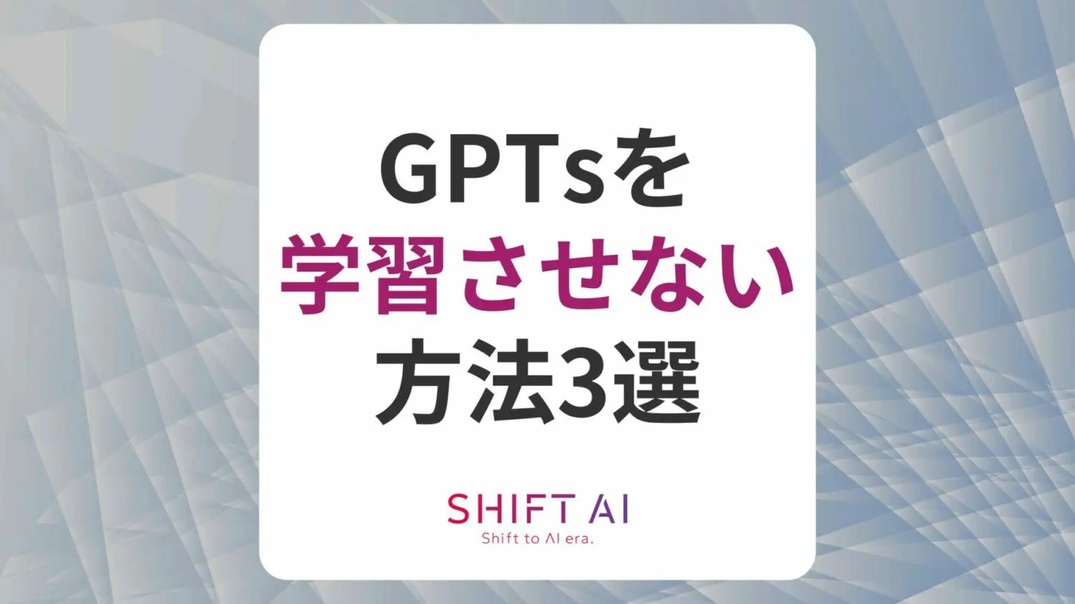 自社で作成したGPTsに入力した内容を学習させないようにするためには、本章で紹介する3つの方法が推奨されます。