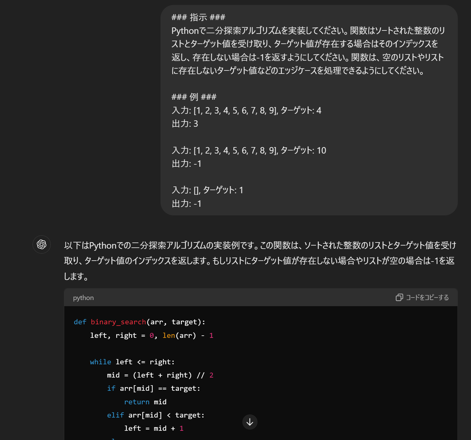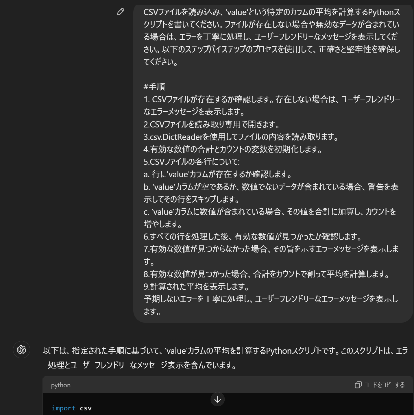 先ほど紹介した例のように、ChatGPTは比較的短い指示のみでは、多くの場合完璧ではないコードを生成してしまいます。(特にPython)