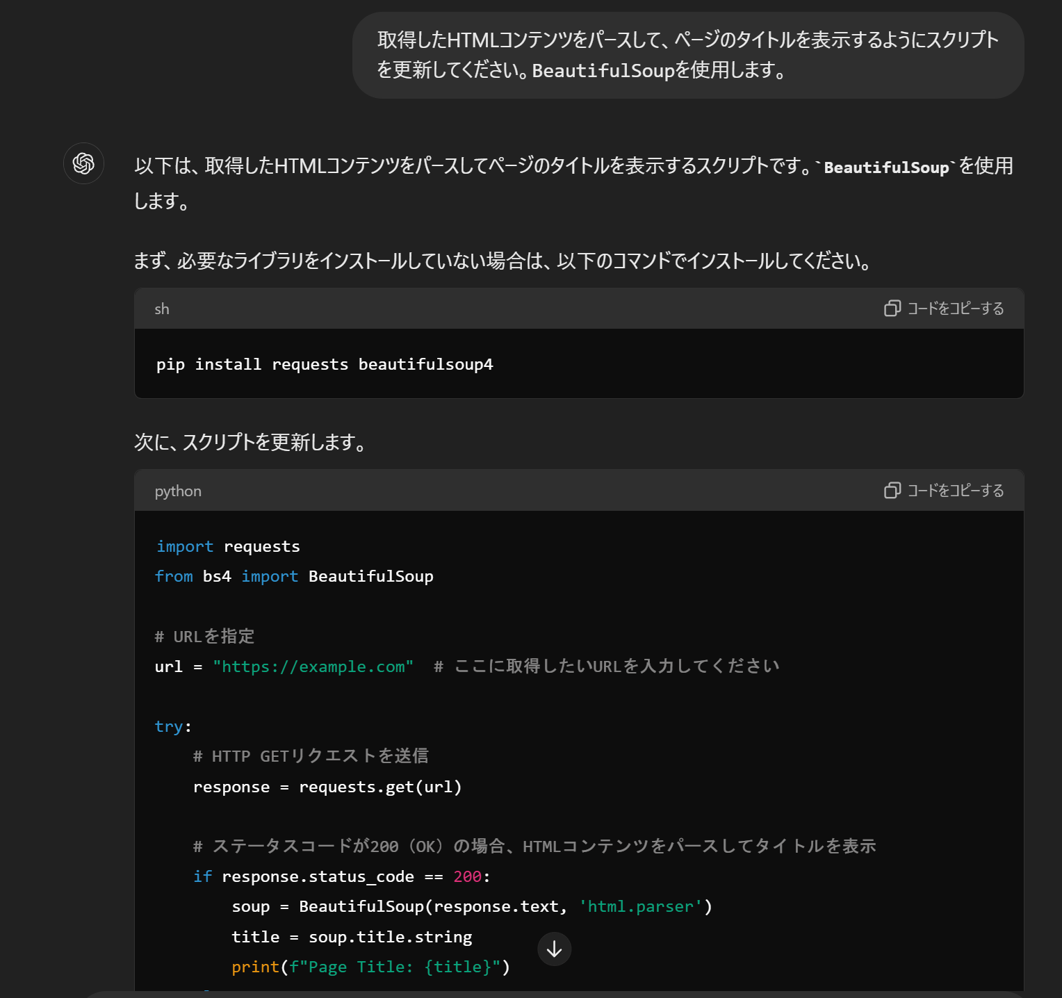 ChatGPTによって生成されたコードには誤りや一般的ではない手法が含まれる可能性があります。