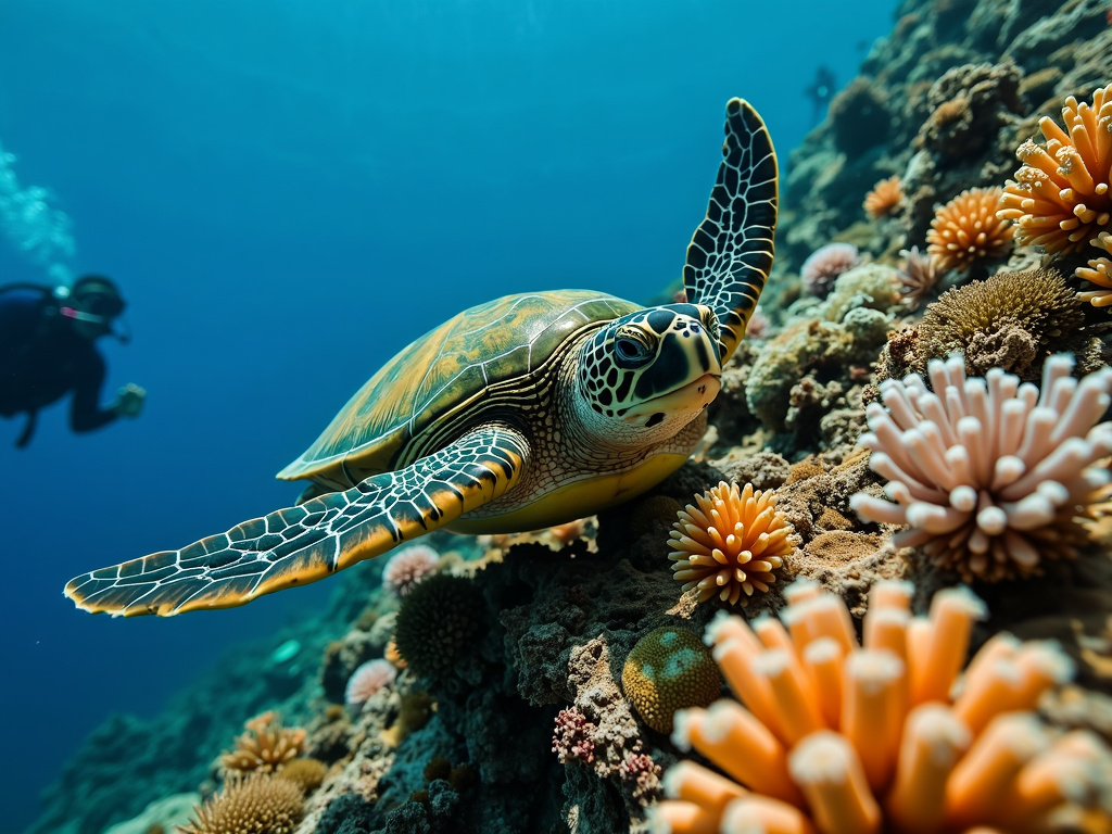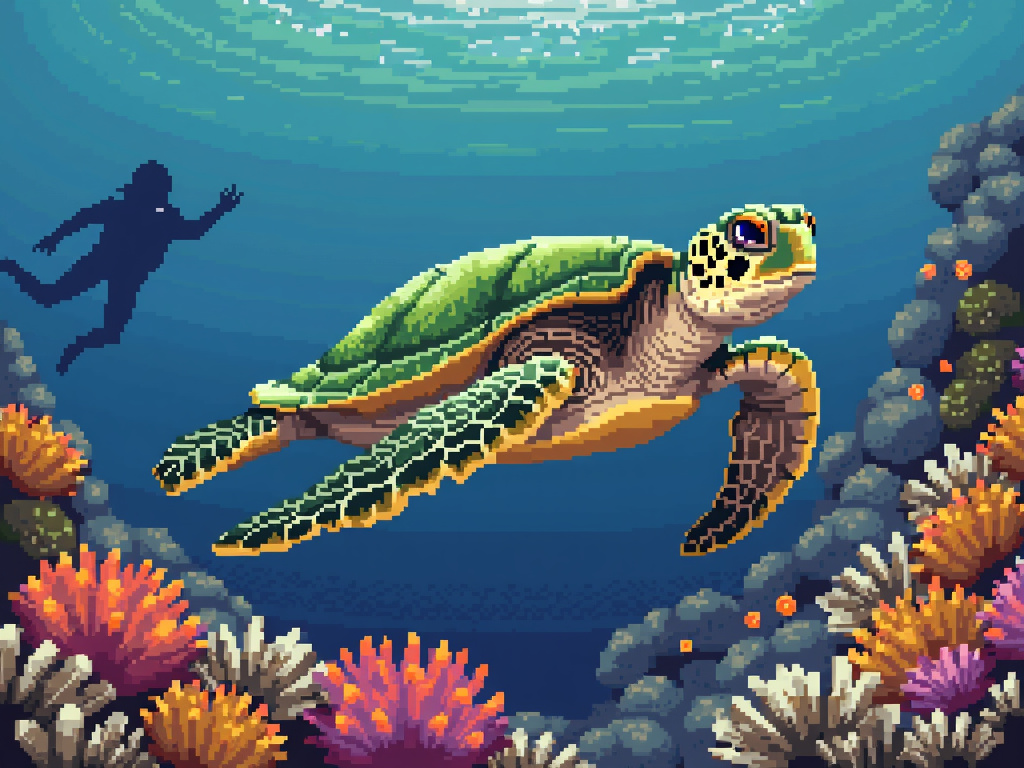 以下は、ダイビング中に撮影したウミガメをリアルに再現した画像です。