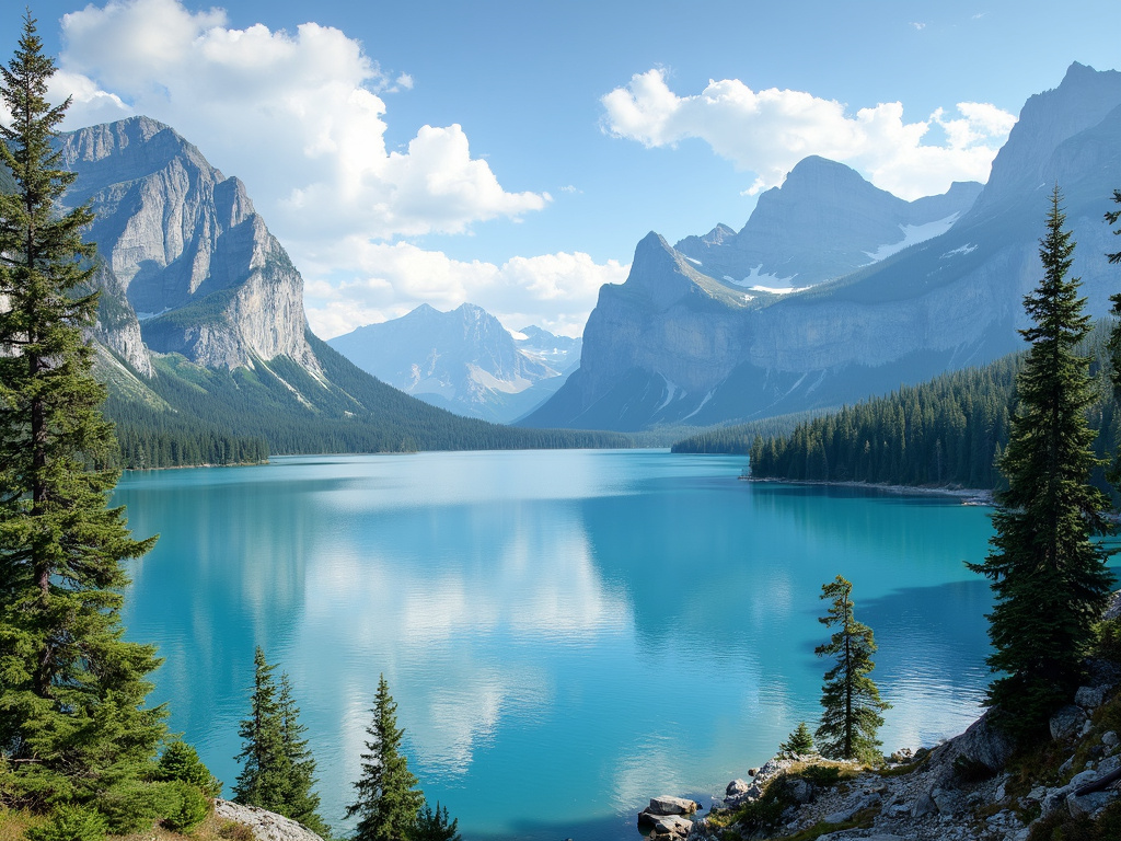 Flux.1では、風景の画像も生成できます。以下は、湖の画像をパノラマで撮影した瞬間を再現した画像です。