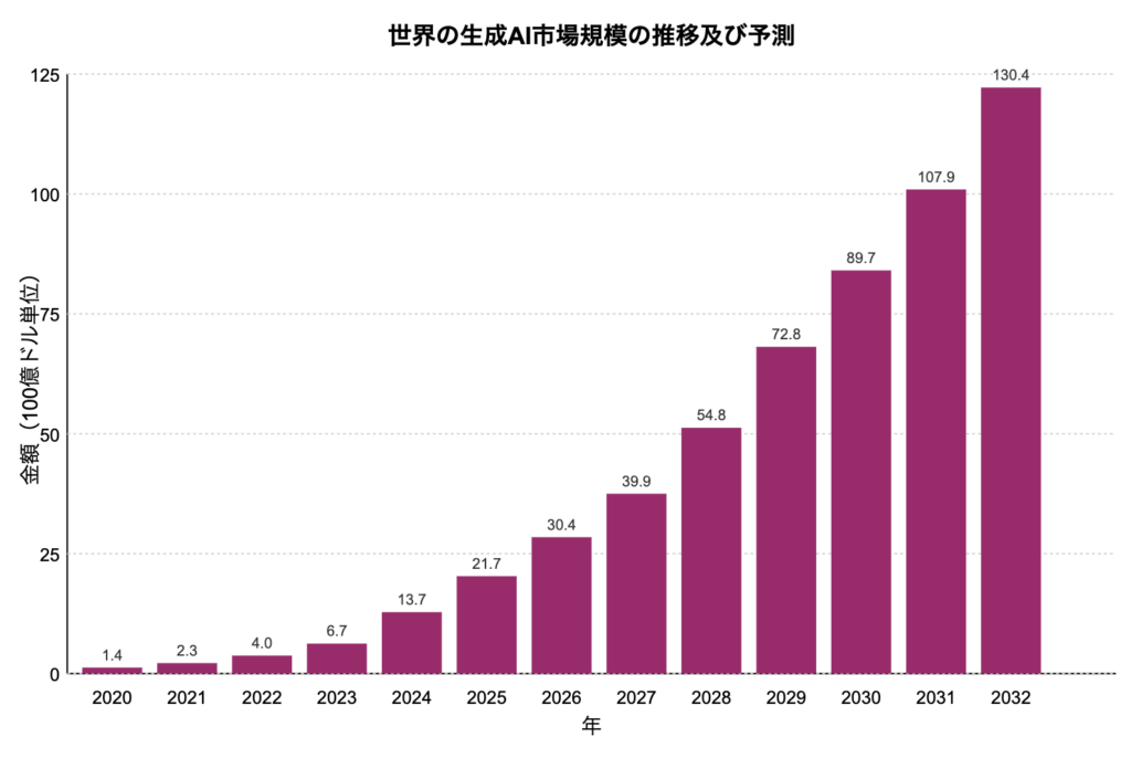 生成AIは多様な用途で活用できる可能性を秘めており、それが市場の急速な拡大につながっていると考えられます。今後も生成AI市場は成長を続け、さまざまな産業に影響を与えていくと予想されます。