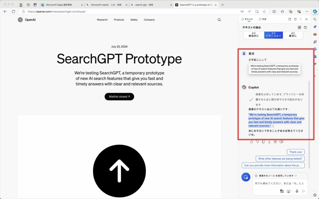 スクリーンショットを撮影して「文字起こししてください」と入力することで、Copilotが正確に処理を実行してくれます。