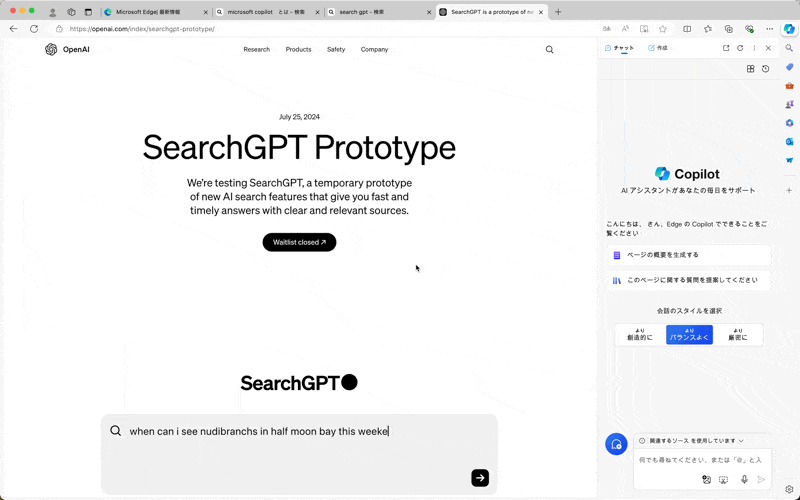 Edge上でCopilotを使うことで、開いているページの要約を行えます。