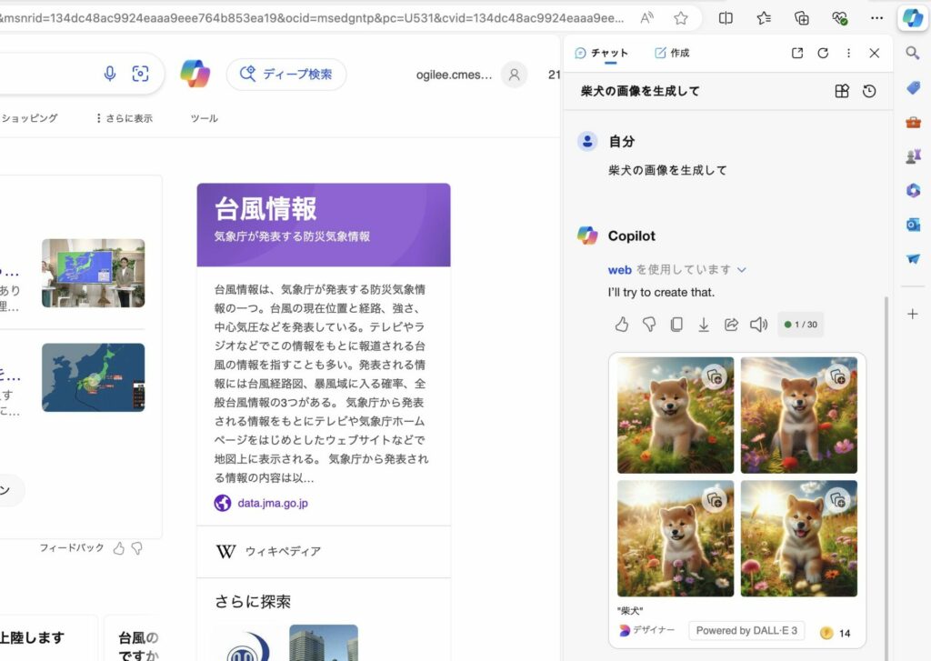 Edge上では、テキストから画像を生成する機能も利用できます。