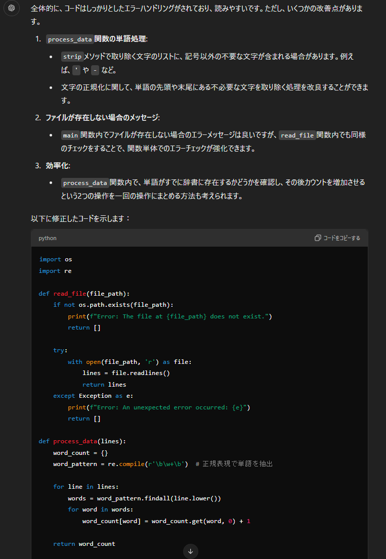 さらに、ChatGPTはコードの論理的な問題を特定するのにも役立ちます。