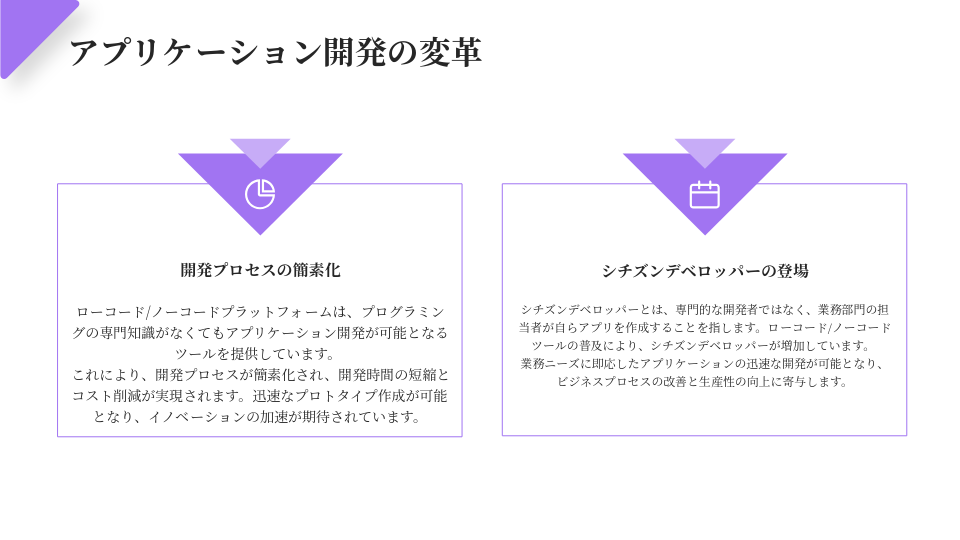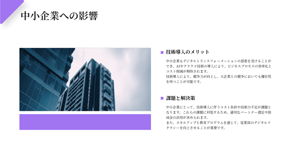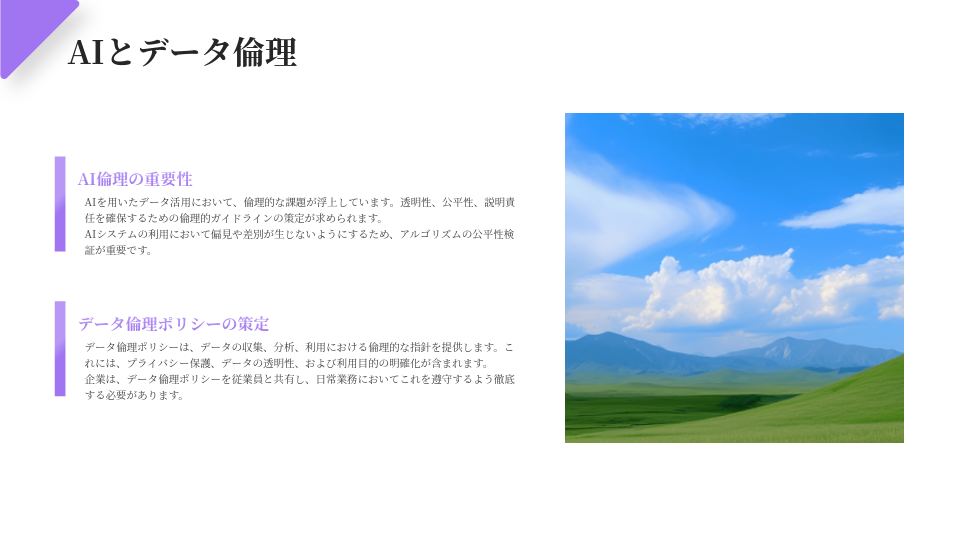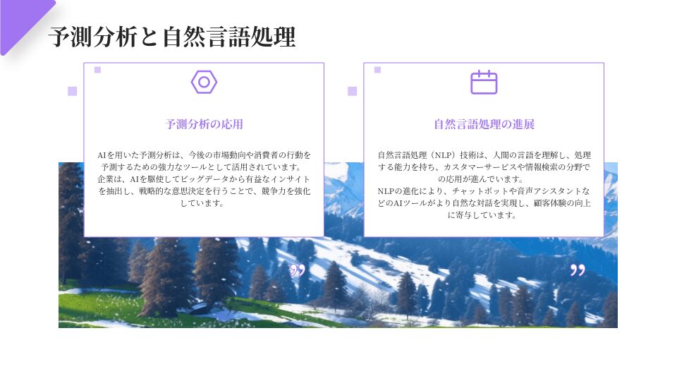 上記のスライドに人間の手は一切はいっていません。ここから人間が微調整することで、質の高い資料を短い時間で作成できるようになります。