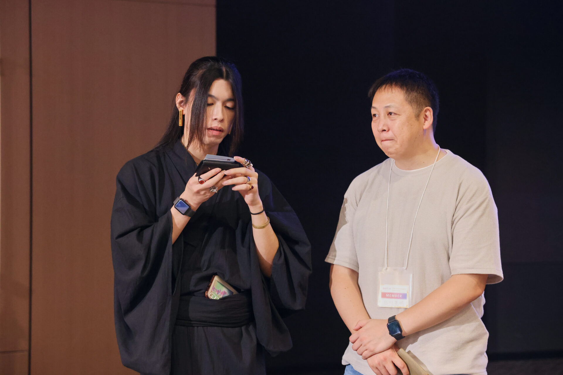 その頃、ステージ袖では登壇直前まで木内さんと西田さんが最終の打ち合わせ。短く交わされる言葉の奥には、積み重ねてきた信頼と緊張が入り混じります。