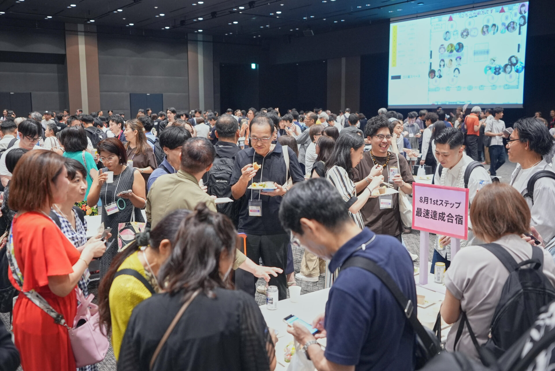 「それでは皆さん、今日は思いきり交流しましょう!」の掛け声とともに、2000名を超える参加者がグラスを掲げ、会場は一気に活気に包まれました。