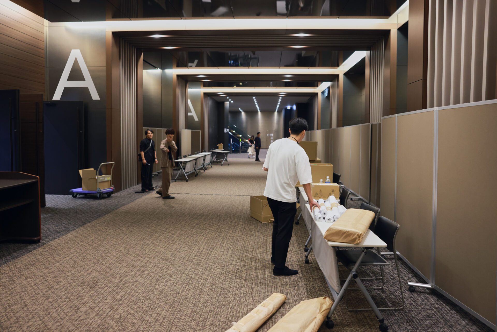 椅子の配置、ケーブルの固定、音響・照明の微調整──。一つひとつは地味な作業に見えますが、参加者の体験を支える重要な土台です。