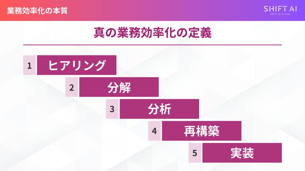今回の勉強会は、業務効率化の真の定義を理解することからスタートしました。