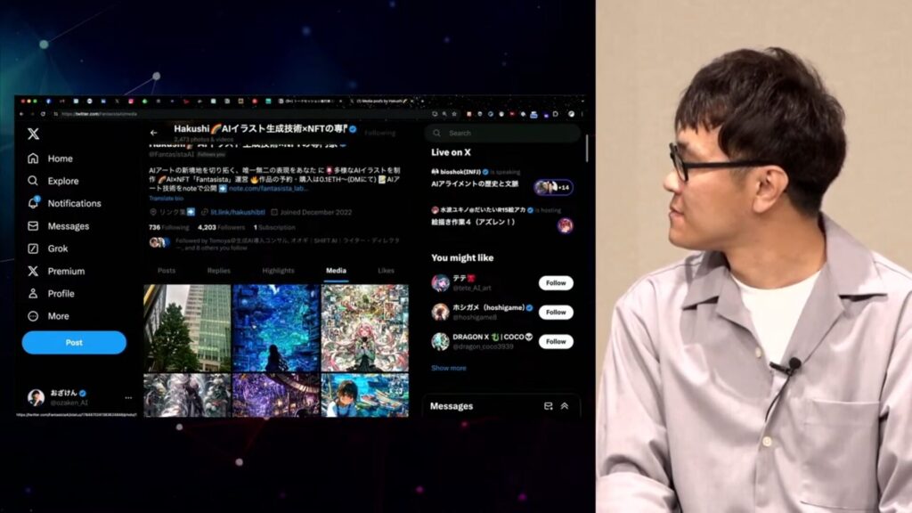 画像・動画生成のパートでは、Hakushi氏を中心に作品をどうマネタイズするかという戦略論が展開されました。