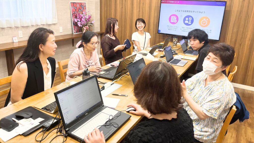 SHIFT AIの「ゆるっと作業会」滋賀開催では、議事録作成による業務効率化から、画像生成によるクリエイティブ作業まで、幅広くAIの可能性を体験しました。