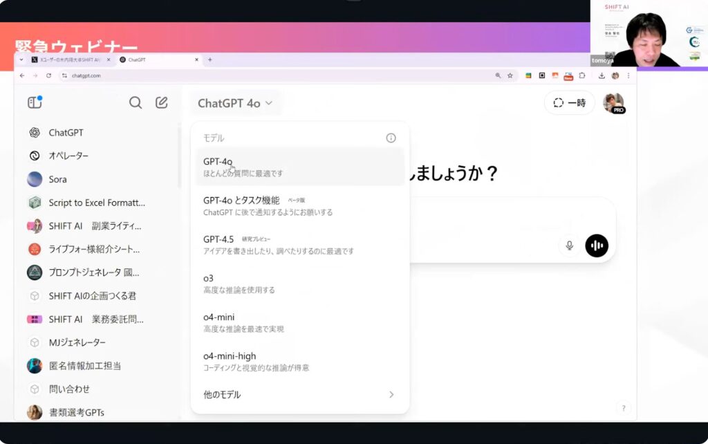 今回は、利用者数No.1*のAI活用コミュニティ「SHIFT AI」で緊急開催された会員向けオンラインウェビナー「緊急開催 !ChatGPT最新モデル o3/o4-mini 徹底解説!」の内容の一部を特別公開します。